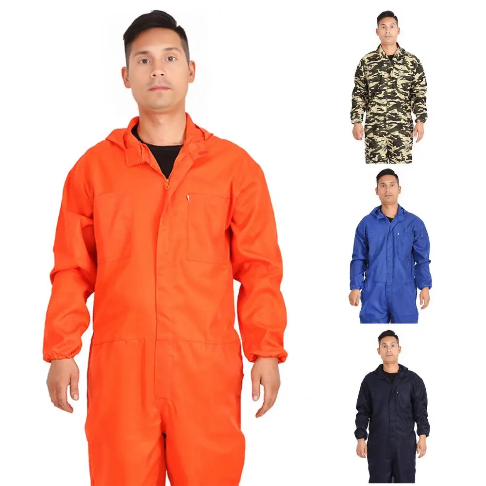 Camouflage Print Men’s Jumpsuit Long-Sleeved Work Jumpsuit Zipper Pocket Jumpsuit Fashion Labor Casual Work Clothes Workwear